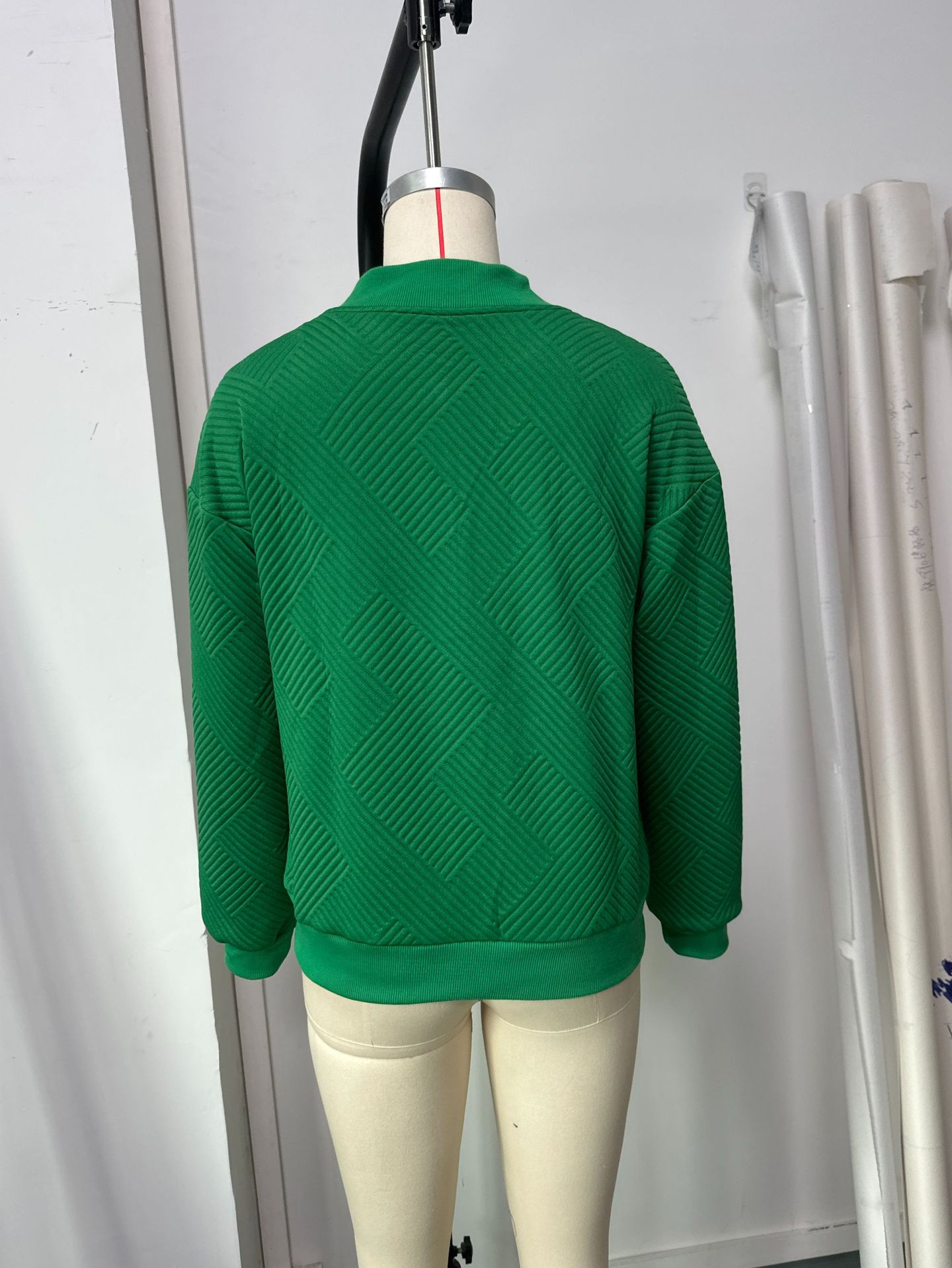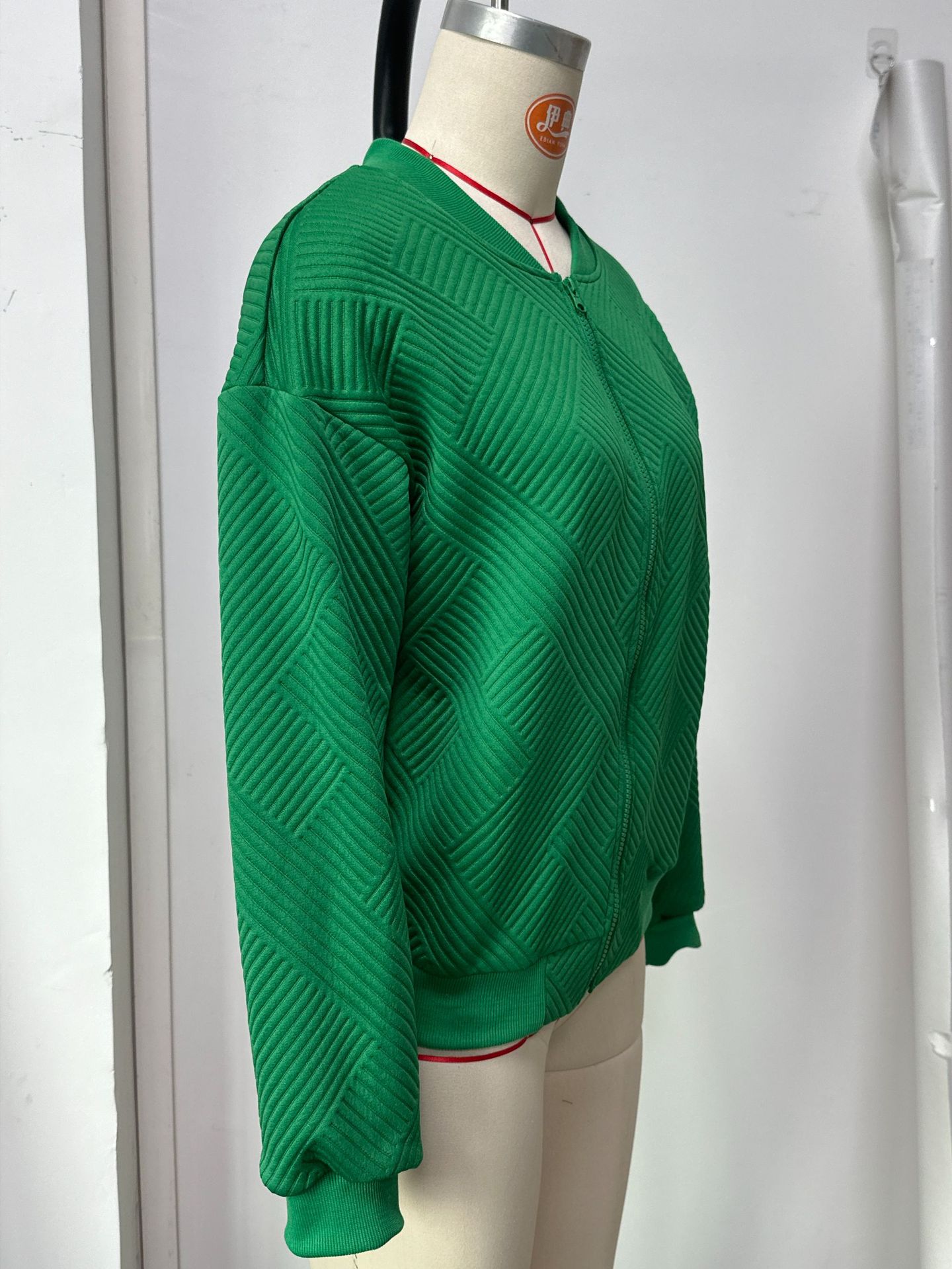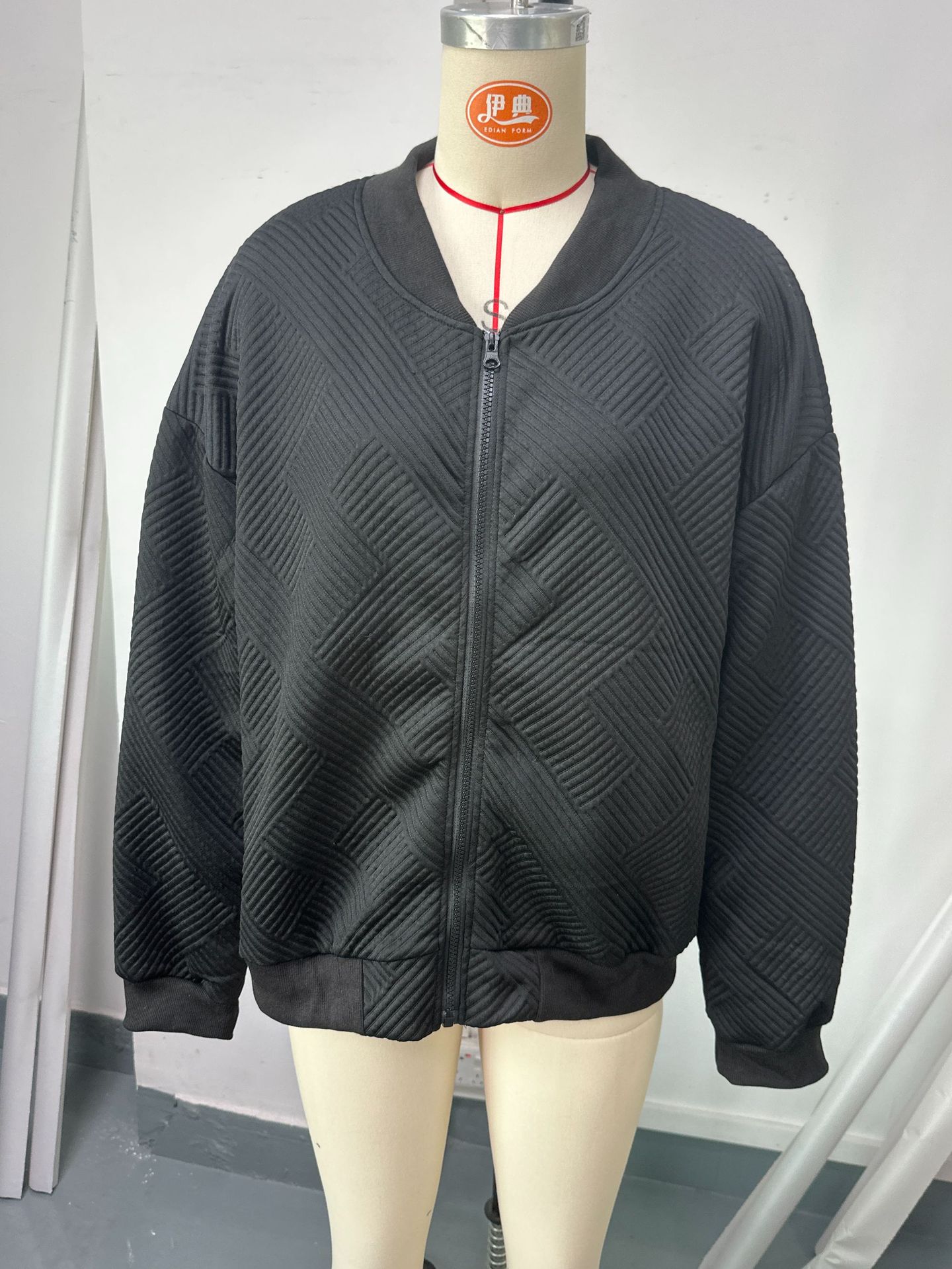 • New Fashionable Plaid Zipper Round Neck Long Sleeve Jacket Women